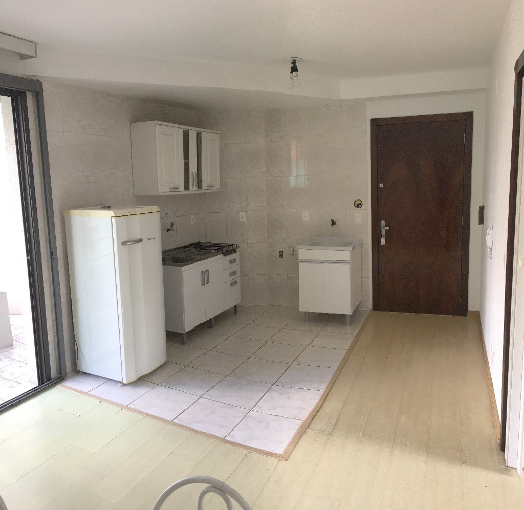 CaracterÃsticas do imóvel: Ed. La Coruna, Proximidade ZAFFARI, Posição do Imóvel NORTE, CondomÃnio confirmar, 1 Dorm., 1 Sala, 1 Cozinha, 1 Banheiro, 1 Area De Servico, 1 Sacada, 1 Elevador, Terraço, Terraco, Mobiliado, Ed.c/ Circuito Interno, Ed.c/vigilancia, Piso Laminado, De Frente, Piso Ceramica, Ed.c/cerca Eletronic, Cerca Eletronica, Ãrea total: 45,00 m².