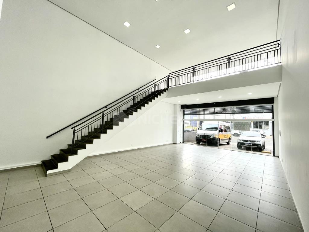 Sala Térrea para Locação: Com porta de vidro, vitrine, mezanino, dois banheiros e estacionamento em frente. Ideal para comércio que busca visibilidade e praticidade.